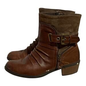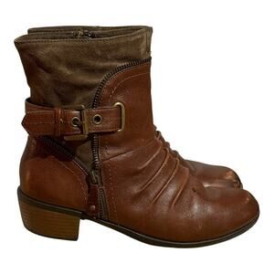 Earth Origins Brown Ankle Boots Women's Size 8 M Zip Ruched Buckle Low Heel