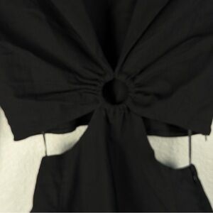NWT Zara Black Cut-Out Bodysuit blouse top, ring detail, snap bottom, Small