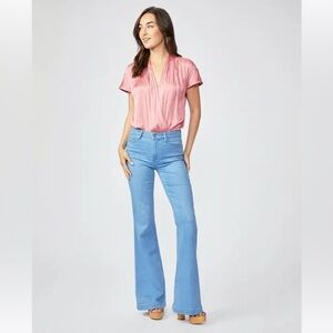 This ultra feminine dolman sleeve thong bodysuit is designed with a flattering faux-wrap that drapes beautifully and stays perfectly tucked in from morning to moonlight. Crafted in Lipstick Pink in luxurious matte satin, this is the perfect bodysuit to style with any shade of denim. Paige Dijon Bodysuit in Lipstick Pink Small 100% Polyester