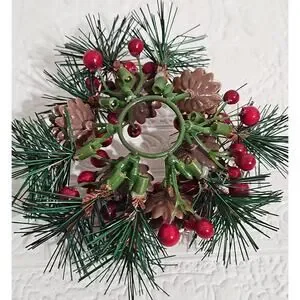 Christmas Candle Ring Faux Wreath Pinecone Red Berries Ralph Lauren Christmas