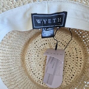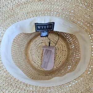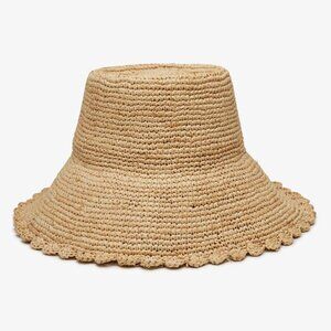 New With Tag Wyeth Lacey Raffia Crochet Scalloped Edge Natural Bucket Straw Hat