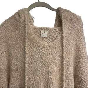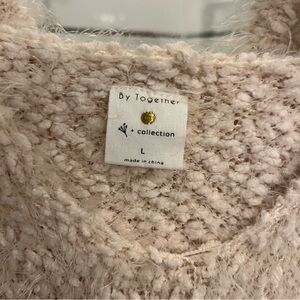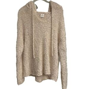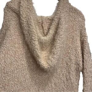 By Together Cream Soft & Cozy Furry Hooded Sweater V-Neck Sz L