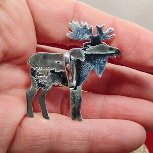Sterling Silver Pink Conch Shell Moose Elk Pendant 2" Long