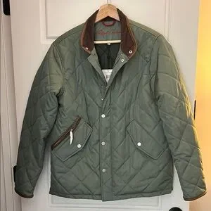 Stylish olive quilted puffer by Robert Graham. Features a sleek design with practical pockets. Brand new with tags.