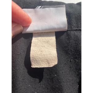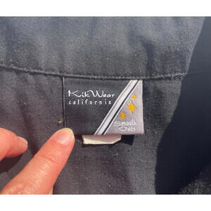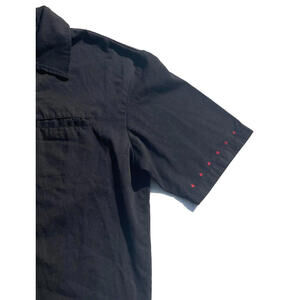 This vintage Kik Wear button-down shirt is a must-have for any fashion-savvy man. The black polyester material and solid pattern make it perfect for any occasion, whether it's a casual day out or a business meeting. With a collared neckline and short sleeves, this shirt is both stylish and comfortable.The XL size and regular fit ensure a great fit for most men, while the embroidered spades accents on the sleeves and pockets add a touch of practicality. This shirt is machine washable and made in the United States, making it a high-quality addition to any wardrobe. Don't miss out on this 90s-themed shirt from Kik Wear.