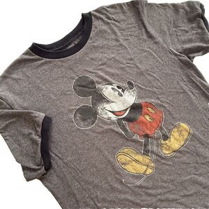 Disney Parks Mens Shirt Medium Mickey Mouse Gray with Black Accent Short Sleeve