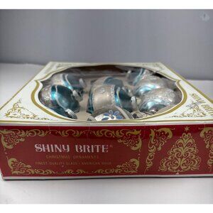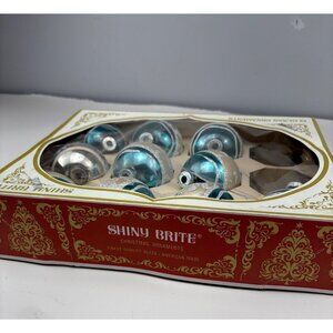 Shiny Brite Vintage Glass Ornaments Teal & Silver Glitter 10-Piece Set Christmas