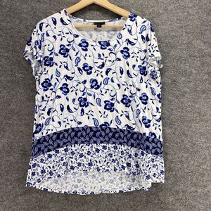 J. Jill Blouse Women PS Petite White Floral Short Sleeve Round Neck Rayon Casual