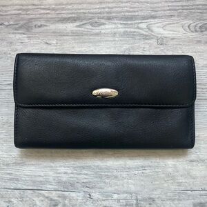 Liz Claiborne Black Leather Trifold Wallet Clutch Snap Closure