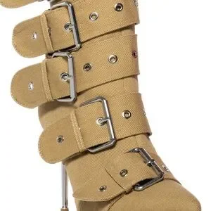 NWT. Azalea Wang Teaira Belt Buckle Heeled Boots in Khaki. New With Tags.
