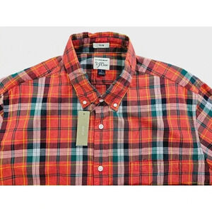 J. Crew Slim Large Men's Red Green Yellow Check Button Down Long Sleeve Cotton