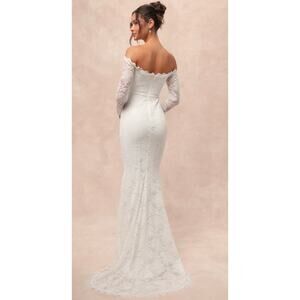 Lulus Beloved Promise White Lace Off-the-Shoulder Mermaid Maxi Dress S