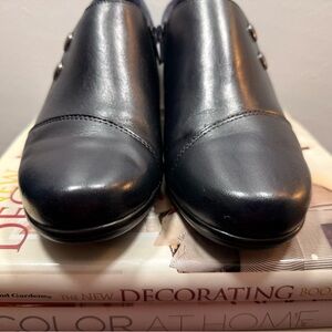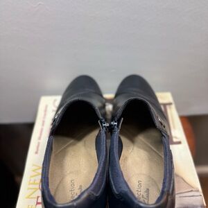 Clarks Women’s Navy Blue Leather Ankle Boots. Preowned item in good condition. Does have minimal wear. Please see all pictures.