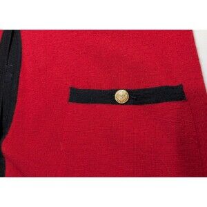 Talbots Sweater Jacket Blazer Red With Black Trim Gold Buttons V-neck XL