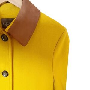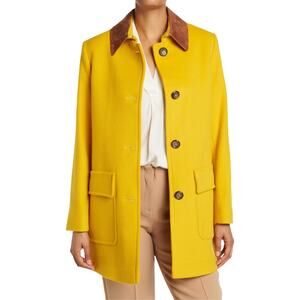 FLEURETTE Wool Barn Coat Jacket Yellow Contrast Collar Pockets USA Medium NWT