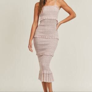 Mable Daphne Smocking Detailed Long Dress in Pink, Size Small, New With Tags