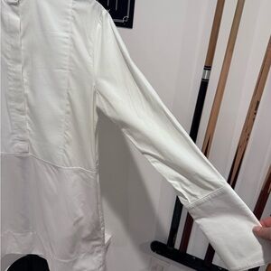 my knees. It is like a more fitted white button down shirt - it’s a dress and is very sleek and crisp.