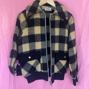 Big chubby yummy collar, two-wag pockets, rubbed waist band and cuffs. Thick vintage zipper.