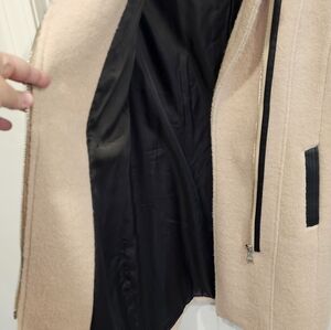 Karl Lagerfeld Womens Cream Wool Blend Coat With Leather Trim - Size M