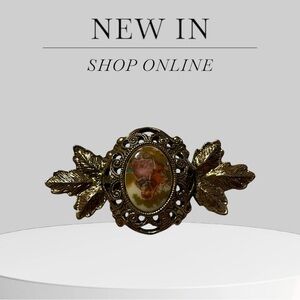 Elegant vintage brooch featuring a gold finish and an artistic centerpiece. Perfect for adding a touch of sophistication to any outfit.