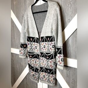 B13.01 Vintage Open knee length sweater w/pockets Aztec Colors/Pattern (XL)
