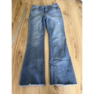 Democracy Jeans Womens 6 Blue Ab Technology Stretch Denim Straight Leg Raw Hem