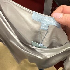 NWT Antonio Melani Shimmering Ice Silk Cowl Neck Blouse – Silver | Size M