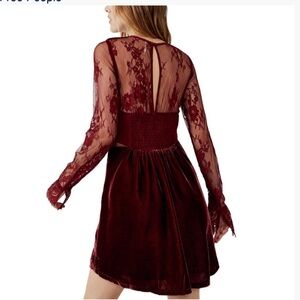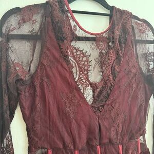 Free People Marlie Lace Mini Dress Burgundy Maroon Small