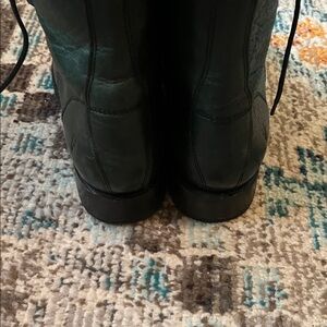 Stylish dark green leather combat boots with lace-up design. Perfect for any occasion. Gently used. Some light scuffing at the toes but adds to the Frye aesthetic.