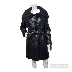 NWT Kenneth Cole Long Puffer Black Trench Coat Size L