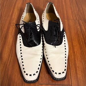Step out in style with these elegant men's dress shoes. Featuring a classic black and white design, they offer a sophisticated look for any occasion.