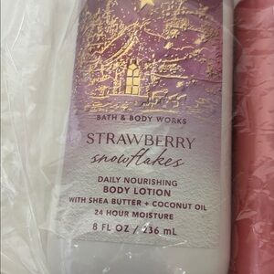 Bath & Body Works 8oz. Strawberry Snowflakes Daily Lotion & Winter Candy Apple