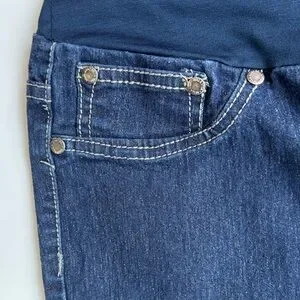 Comfortable and stylish dark blue maternity jeans perfect for everyday wear. Designed to provide support and style throughout your pregnancy. Excellent condition. Lightweight denim skinny leg with stretch.