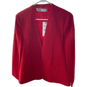 Zara Womens Red Open Front Blazer cape Jacket Size S/M NWD