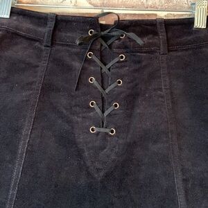 Forever 21 Velveteen Boho Black Lace Up Front Mini Skirt