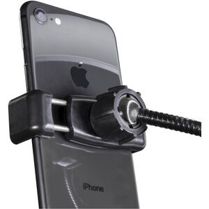 The smartphone holder has a flexible arm for wide positioning options, while the spring-loaded clamp fits most smartphones up to 3.25" wide. The included mini ball head allows 180° of adjustment and can be easily mounted to an optional tabletop tripod or any kind of gear with 1-1/4" male threads. There's even a built-in cold shoe for adding a microphone or an accessory arm to your setup.