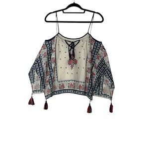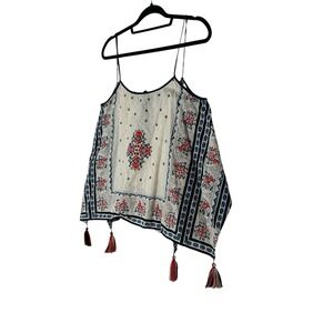 Aerie Top Women Size XS Floral Abstract Print Tassels Boho Bohemian Oversized
