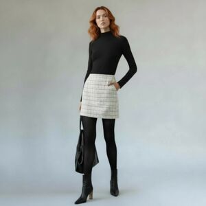 Elevate your style with this chic plaid skirt. Featuring a classic black and white pattern, it's perfect for any occasion. Pockets!