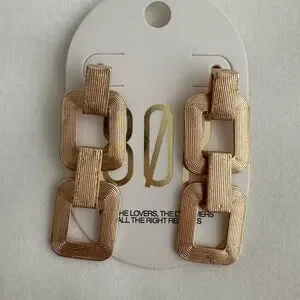 Elegant gold geometric drop earrings perfect for any occasion. Add a touch of sophistication to your outfit.