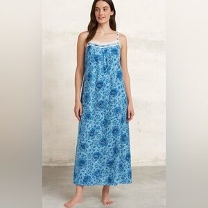 Robe has laced eyelet trim, a sweetheart neck, and pearl button placket for a delicate touch.