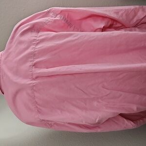 Men's button down shirt with pocket. Inside collar and cuffs have the Burberry plaid in pink and beige.