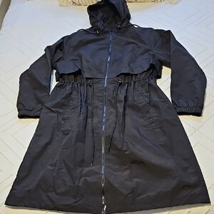 A New Day Women's Black Hooded Rain Jacket Trenchcoat Size XL