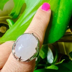 Rose Quartz Crystal Stone Heart Chakra Ring Size 7.5 Silver-toned adjustable band has some room to stretch. Rose quartz is known as a healing crystal and the stone of unconditional love. It's believed by some to emit strong vibrations of love, which are thought to: support emotional and relationship healing. inspire compassion. boost feelings of peace and calm.