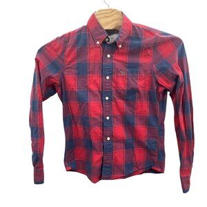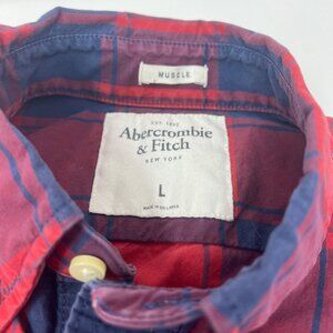 Abercrombie & Fitch Mens Red & Navy Plaid Button-Up Shirt Muscle Fit Size L