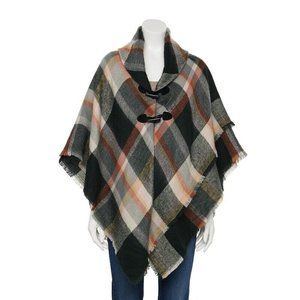 Apt. 9 Poncho Sweater Plaid Toggle Flannel Fray Hem NWT