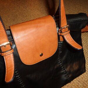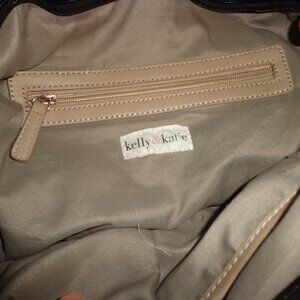 Kelly & Katie Satchel Bag Black/Tan Double Adj. Handle Straps Zip/Snap Closure