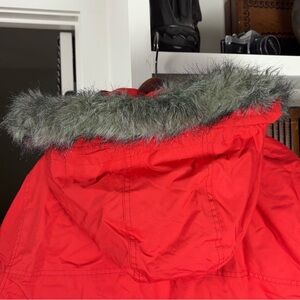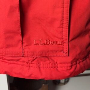 Preowned condition LL Bean Baxter State Down Parka men’s xl regular in a red/orange. Light discoloration on one sleeve and a couple light dirt spots on shell. Overall gently used condition. Retails for $350. Laid flat measurements: pit to pit: 27" sleeve: 26 1/2" length: 35"