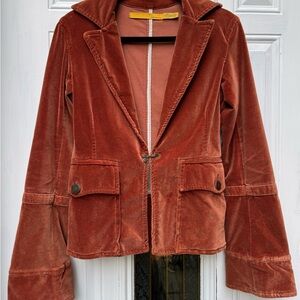 Beautiful pumpkin color velvet velour Jacket with pockets