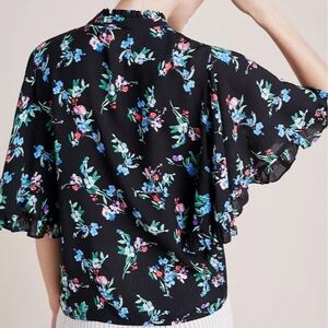 Anthropologie Maeve Aviero Flutter Sleeve Button Down in Floral