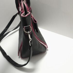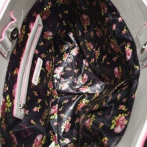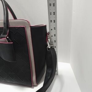 Betsey Johnson Black and Pink Heart Bow Hand Bag Purse Floral Silver Hardwear